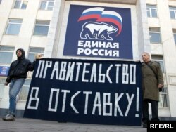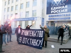 Движение "Левый фронт" сегодня в очередной раз потребовало отставки российского правительства. Несанкционированная акция прошла у общественной приемной председателя партии "Единая Россия" Владимира Путина, расположенной в одном здании с офисом московской организации партии.