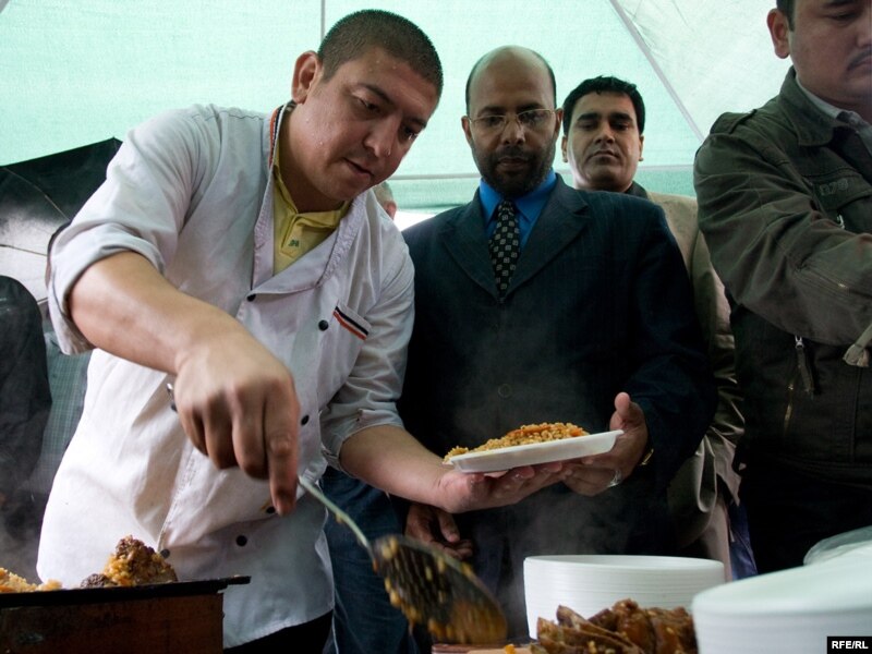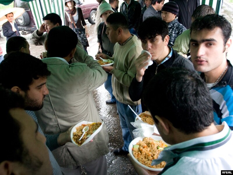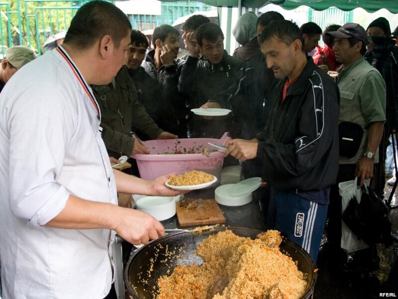 Федерация мигрантов планировала кормить безработных ежедневно с 12 до 19 часов. Все бесплатно, на свои средства, усилиями поваров – мигрантов, найденных силами Федерации. В меню – плов с морковкой, баранина, овощной салат с помидорами, огурцами и луком, хлеб, вода и чай.