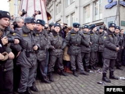 Милиция на Триумфальной площади в Москве во время акции за свободу собраний