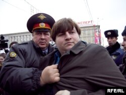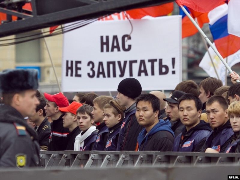 Одновременно на площади проходила акция "Молодежь против террора", организованная прокремлевскими молодежными движениями. Ее власти разрешили.