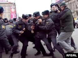 В числе задержанных - организаторы акции Эдуард Лимонов, Константин Косякин, Александр Аверин, а также один из активистов Движения в защиту Химкинского леса, которое впервые присоединилось к традиционным акциям на Триумфальной площади.