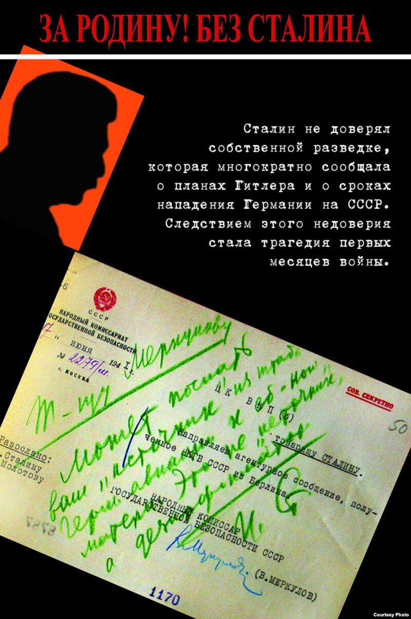 Плакат "Мемориала": Сталин не доверял советской разведке, предупреждавшей о нападении Гитлера на СССР