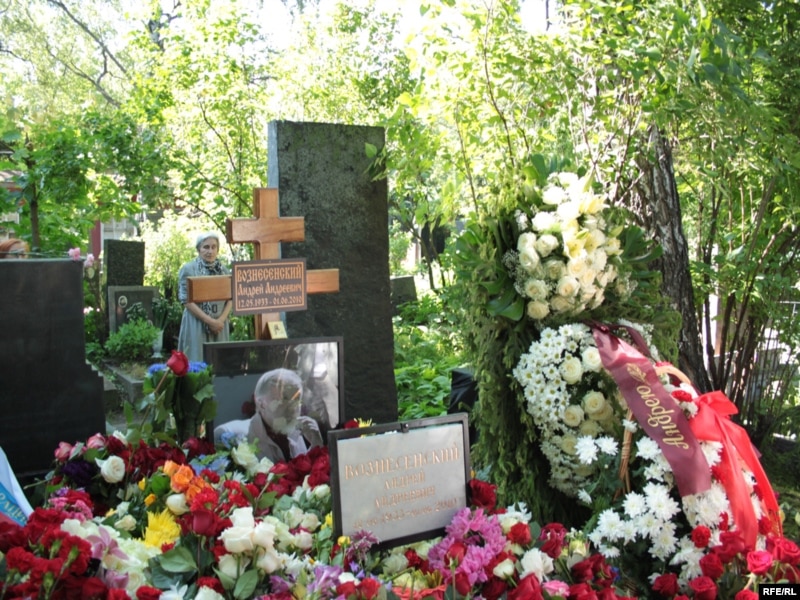 Прощание и гражданская панихида состоялись в Центральном доме литераторов, с которым у Андрея Андреевича была связана вся жизнь. Отпевание прошло в храме святой Татьяны при МГУ. Похоронен поэт на Новодевичьем кладбище рядом со своими родителями. Вознесенский скончался 1 июня на 78-м году жизни.