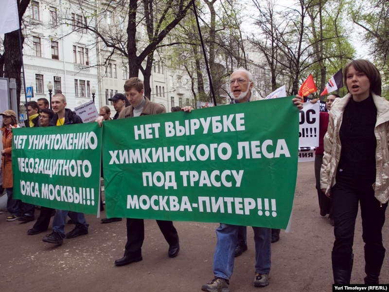 Между тем накануне, 14 июля, российские экологи провели в центре Москвы акцию в защиту лесов и парков. Участники акции высказались против экологической политики столичного и подмосковного правительства. В частности, против строительства ветки метро в заповедном участке Битцевского леса и планов проложить трассу Москва - Петербург через Химкинский лес. По словам координатора Союза общественных экологических организаций Москвы Андрея Моргулева, в своих попытках спасти столичные подмосковные леса экологи дошли до самого верха: