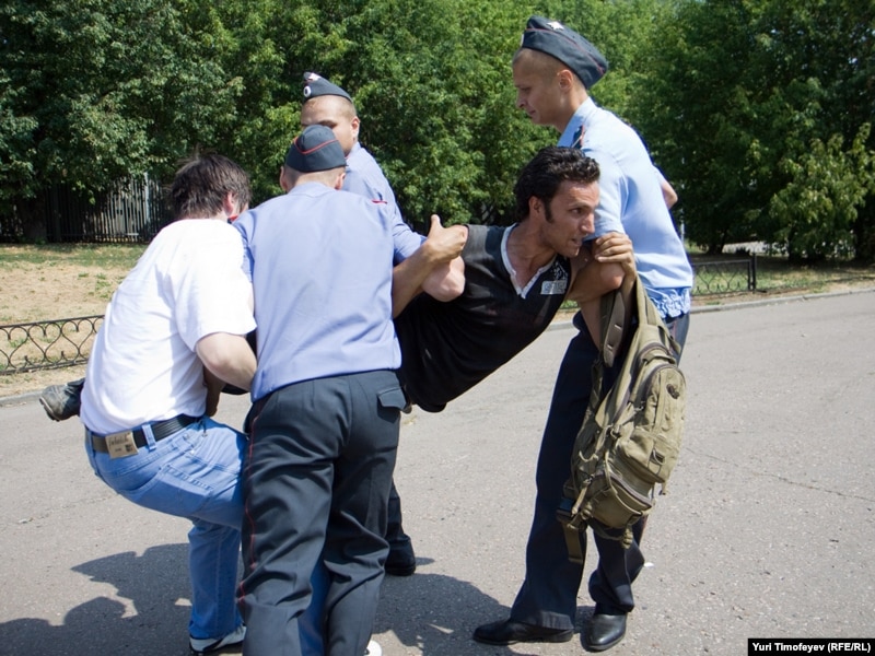 После начала сбора подписей под обращением к правительству РФ милиция объявила акцию незаконной и начала задержание участников