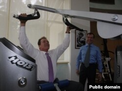 В России обсуждают визит в страну губернатора Калифорнии Арнольда Шварцнеггера и первые итоги его встреч с президентом Дмитрием Медведевым: губернатор Калифорнии прокатился в московском метро, побывал в тренажерном зале Медведева, получил приглашение занять пост мэра Москвы и пообещал привлечь американский бизнес в российский инновационный проект "Сколково" – аналог знаменитой калифорнийской Кремниевой долины.