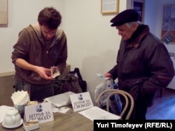 За первые два часа акции было собрано 28103 рубля. Организаторы надеются, что к вечеру народ активизируется. Борис Михайлович Болотовский (на фото) принес 300 рублей: за себя, свою супругу и друга. На вопрос корреспондента Радио Свобода о причине, побудившей его участвовать в акции, Борис Михайлович ответил, что для человека важна не только внешняя свобода, но, что гораздо важнее – свобода внутренняя.