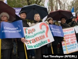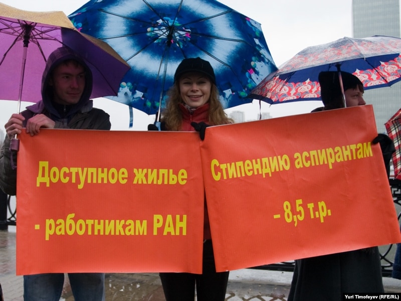 Проливной дождь не помешал сотрудникам Российской академии наук из двух десятков регионов собраться в Москве на митинг с требованием увеличить финансирование науки. Правда, акцию им разрешили провести в месте глухом, практически безлюдном – на Нижней набережной Тараса Шевченко.
