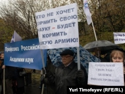 – Я сотрудник Институт физики Земли РАН, ведущий инженер, работаю в институте около 50 лет. Зарплата моя – 13 тысяч 200 рублей, – сообщила корреспонденту Радио Свобода одна из участниц митинга.