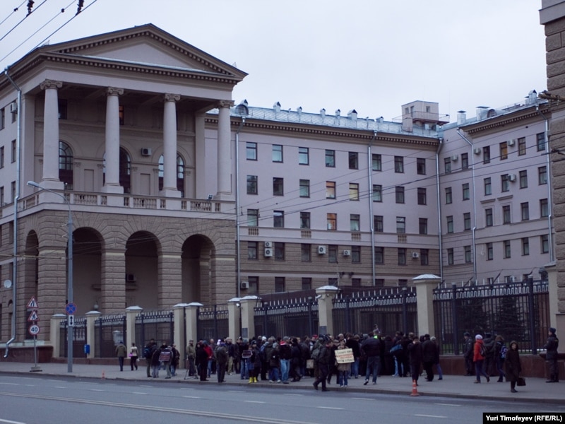 Более 50 человек собрались на Петровке, 38 и сменяя друг друга проводят индивидуальные пикеты с требованием расследования нападения на Олега Кашина