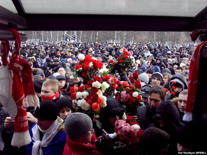 Корреспондент Радио Свобода работал на акции памяти Егора Свиридова, убитого 6 декабря в массовой драке спартаковского болельщика.