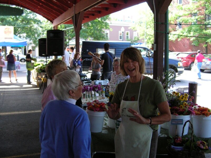Джанет Флинчбах: Циния – любимые цветы моего мужа, ему и покупаю. Вы знаете, цветы – это полезно для души. Вообще-то, многие из этих цветов (и цинию тоже) я выращиваю у себя в саду. Почему тогда покупаю у Дебби? А потому что мои не такие красивые, как у нее.