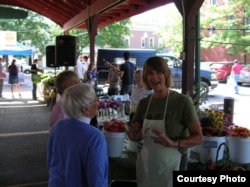 Владимир Морозов: Да, публика пришла сюда не за дешевым товаром. В углу павильона продают модный сегодня греческий йогурт, который по вкусу и плотности больше напоминает сметану. На фермерском рынке пластиковая банка весом 900 граммов стоит 6 долларов. В пяти минутах езды отсюда - супермаркет ''Price Chopper'', в десяти - другой гигант - ''Wallmart''. Там тот же греческий йогурт по 4 доллара. В полтора раза дешевле. Я раскошелился и купил банку на рынке. Жена не одобрила и заявила, что греческий йогурт с базара слишком жирный, а в супермаркетах более полезный для здоровья – обезжиренный... На фермерском рынке, который отмечает сегодня свое 35-летие, торгуют не только фермеры. Вон ту высокую подвижную даму по имени Дебби я несколько раз встречал в библиотеке города Гленн-Фолз. Ее муж Чарлз Бейли профессор истории в колледже Адирондак.
