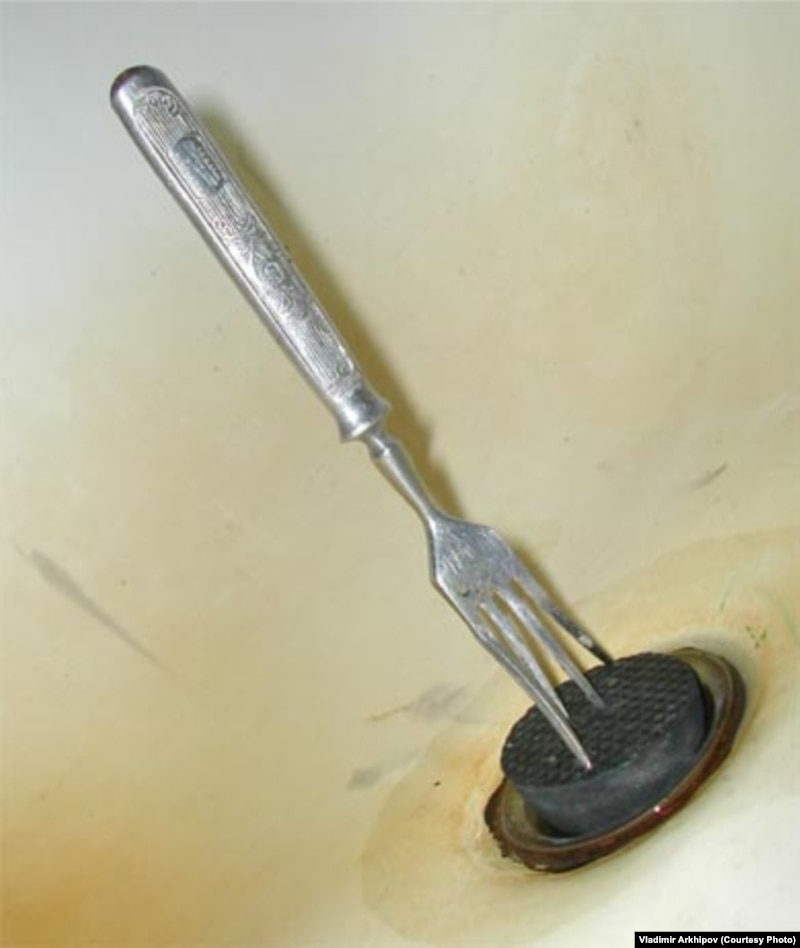 Томаш Гланц: Владимир Архипов известен тем, что он уже более 15 лет объезжает мир и находит предметы, которые возникли не как артефакты, не как произведения искусства, а для того, чтобы компенсировать некий недостаток – это свободное время, которое используется для того, чтобы как-нибудь наладить быт, создать то, что нельзя купить из-за отсутствия денег или потому, что такие вещи в магазинах не продаются, или по нежеланию покупать такие вещи, которые человек создает сам. И он создает предмет, который, с одной стороны, утилитарен, а, с другой стороны, представляет собой некий гибридный эстетический объект – антенна из вилок, странное устройство для производства самогона или ложка с дыркой внутри, которая приспособлена для мыльных пузырей. То есть предметы, которые недостаток превращает в некий избыток.