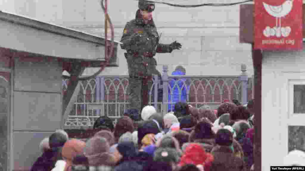 Бесплатно раздается чай, сотрудники МЧС в полевых кухнях готовят кашу.
