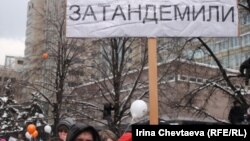 Екатерина Петрова: Люди приходили на митинг семьями, они приносили плакаты с требованием вернуть честные выборы. Были и лозунги на злобу дня, так на растяжке, которые держали молодые люди, красовалась надпись <Это фальсификация. Митинг снят на квартире>. Наибольший отклик вызвал плакат с изображением Владимира Путина и Дмитрия Медведева в упряжке деда Мороза, у которого авторы попросили нового президента, а представителей тандема предложили забрать себе. Среди выступающих были и представители системной оппозиции. Депутат областной думы от Справедливой России Георгий Перский поздравил всех с пробуждением гражданского общества: