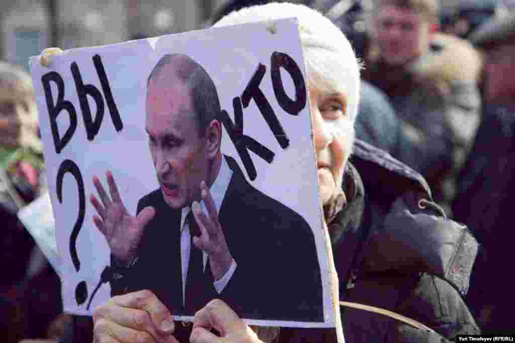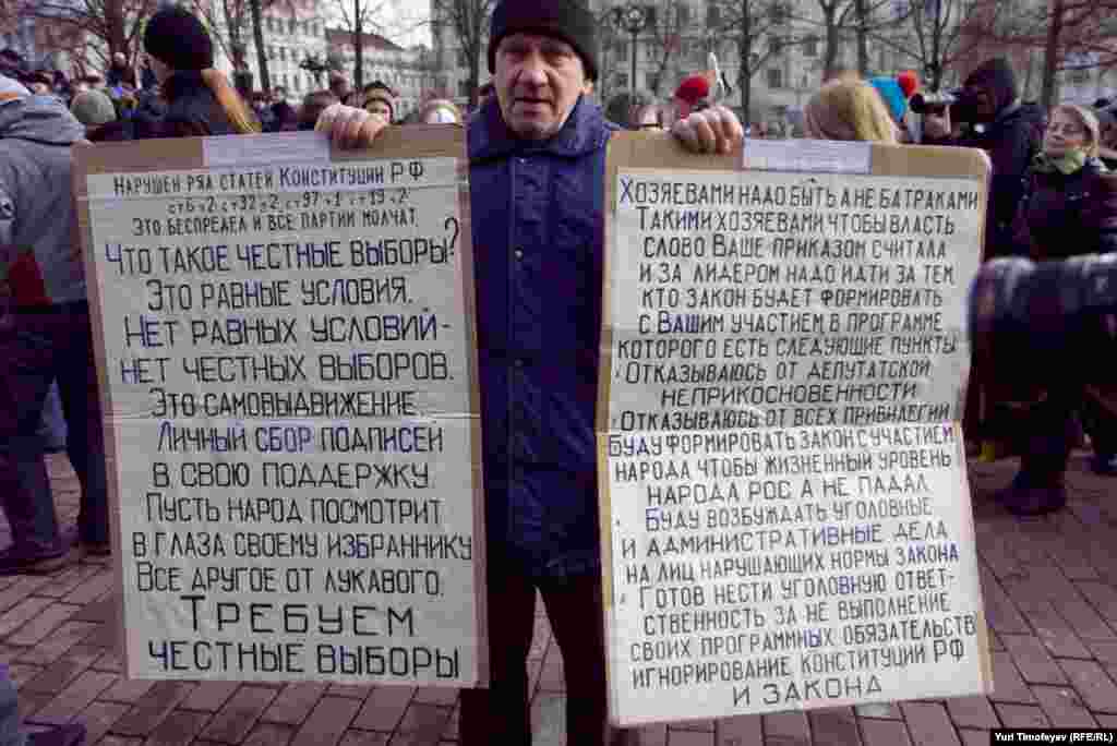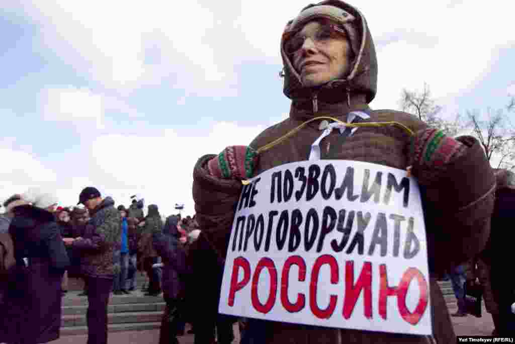 Перед началом встречи оппозиционеров на Пушкинской площади, некто в образе Пушкина к плаката "Моя площадь не место для революционных заговоров" хотел прочитать стихотворение "Клеветникам России"...