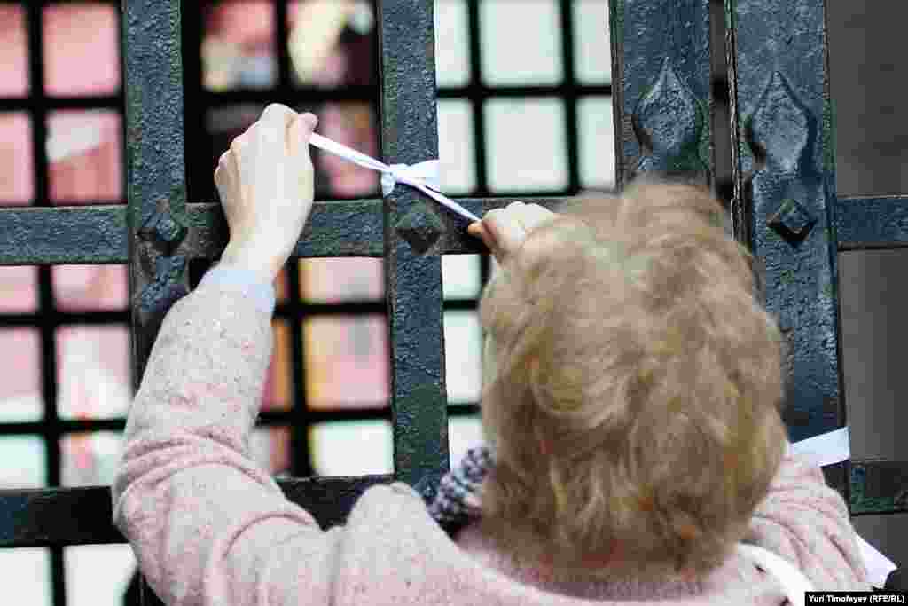 Акция-прогулка с белыми лентами у Красной площади в Москве