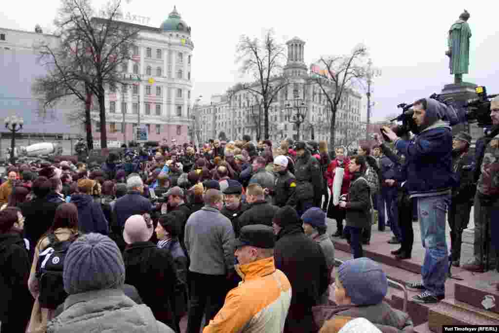В Москве около 150 человек пришли на Пушкинскую площадь для участия в "народном оргкомитете" оппозиции.