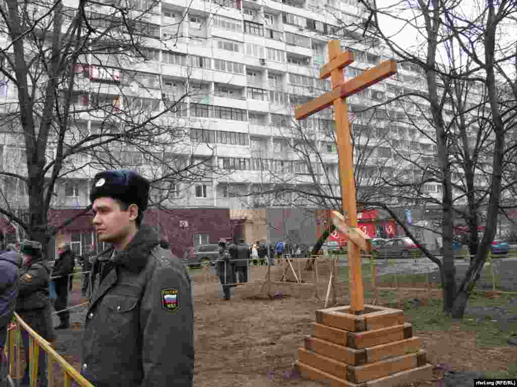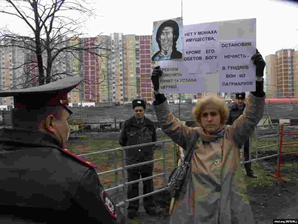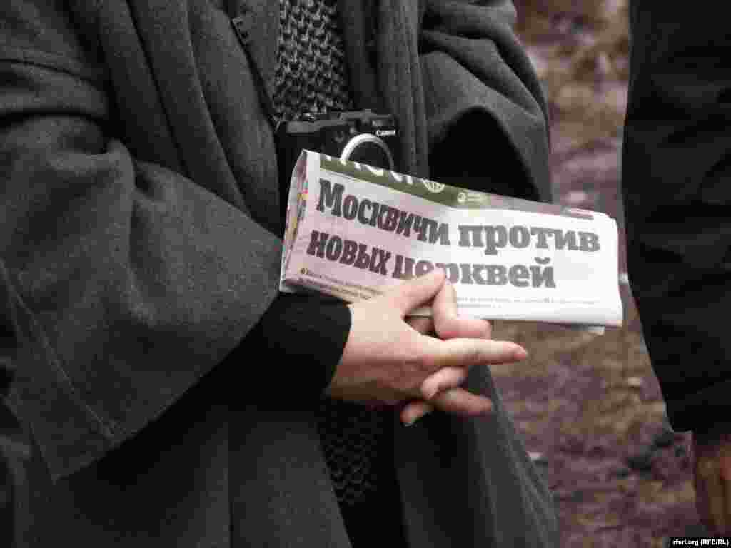 Rally in Khoroshevo-Mnevniki against the construction of "church within reach." Moscow, April 14, 2014