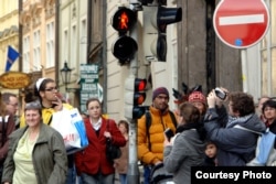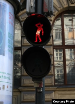 Дмитрий Волчек: Недавно в Чехии после месячного заключения вышел на свободу художник, выступающий под псевдонимом Роман Тыц. Ему пришлось отправиться за решетку после отказа заплатить штраф за проведение художественной акции: в центре Праги он заменил стекла нескольких светофоров – вместо стоящего или идущего человечка появились смешные изображения пьющих пиво молодых людей, женщин с колясками, мужчин с собаками на поводке, стариков на костылях. Тыц возместил ущерб за порчу светофоров, но штраф платить отказался, потому что не считает свою акцию преступлением, как ее квалифицировали в суде. Это дело вызвало продолжающуюся в чешском обществе дискуссию об отношении художника и государства. С Романом Тыцем встретилась Александра Вагнер.
