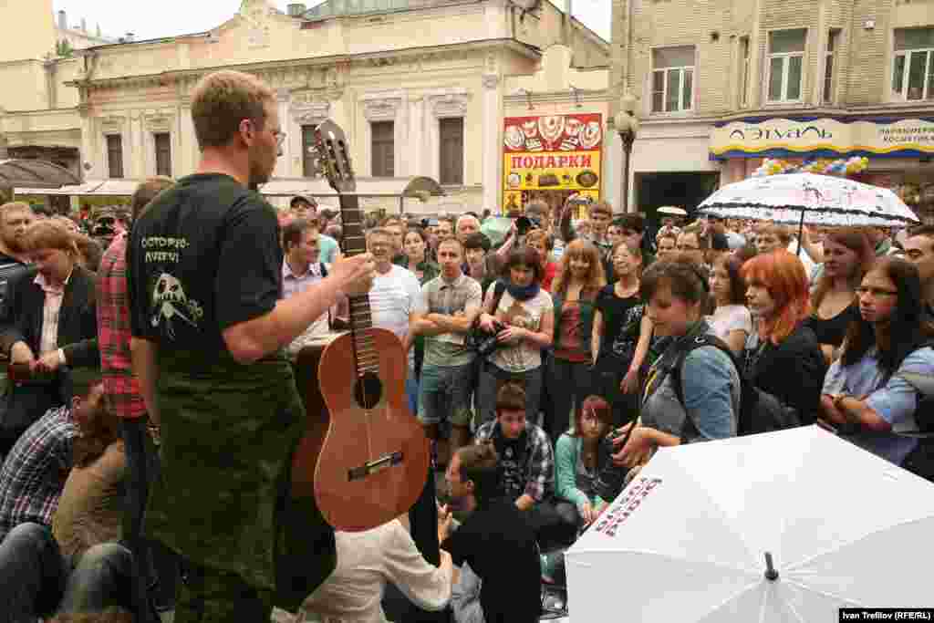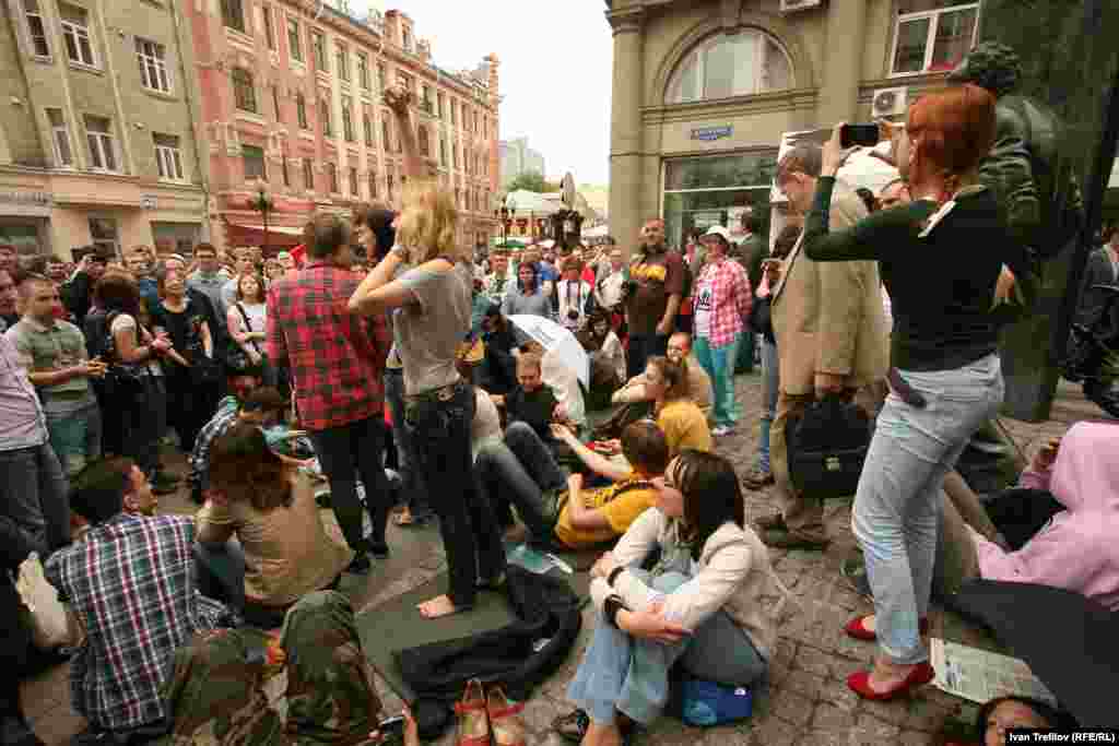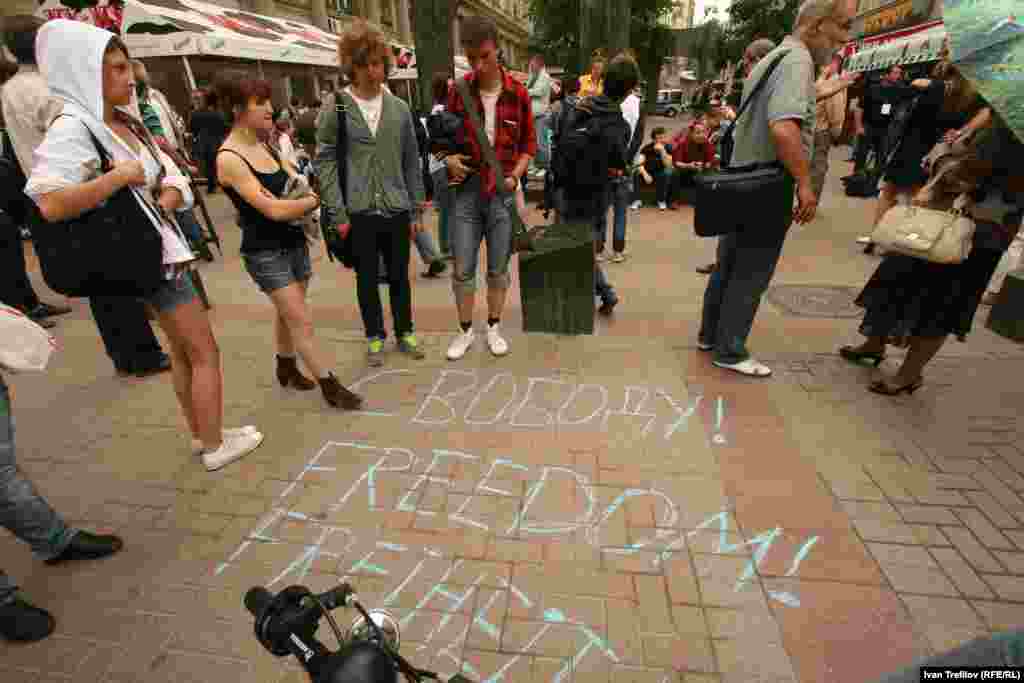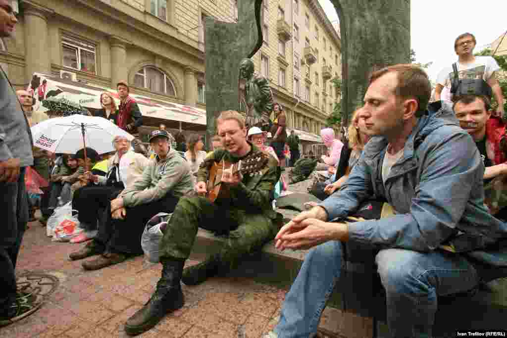 Активисты "Оккупай" - у памятника Окуджаве на Старом Арбате