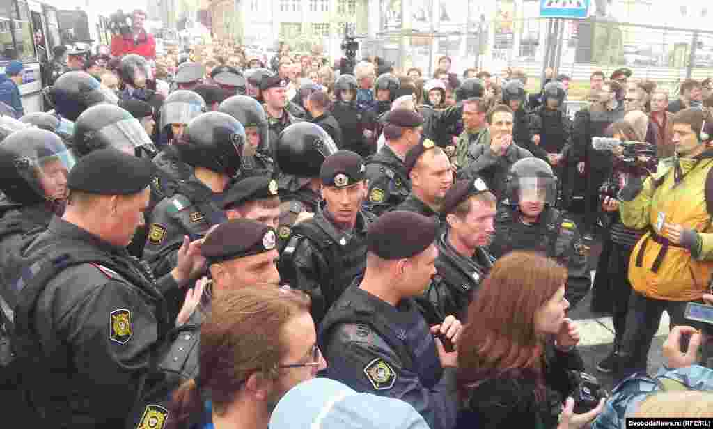 Полиция выдавливает участников акции и журналистов с Триумфальной площади