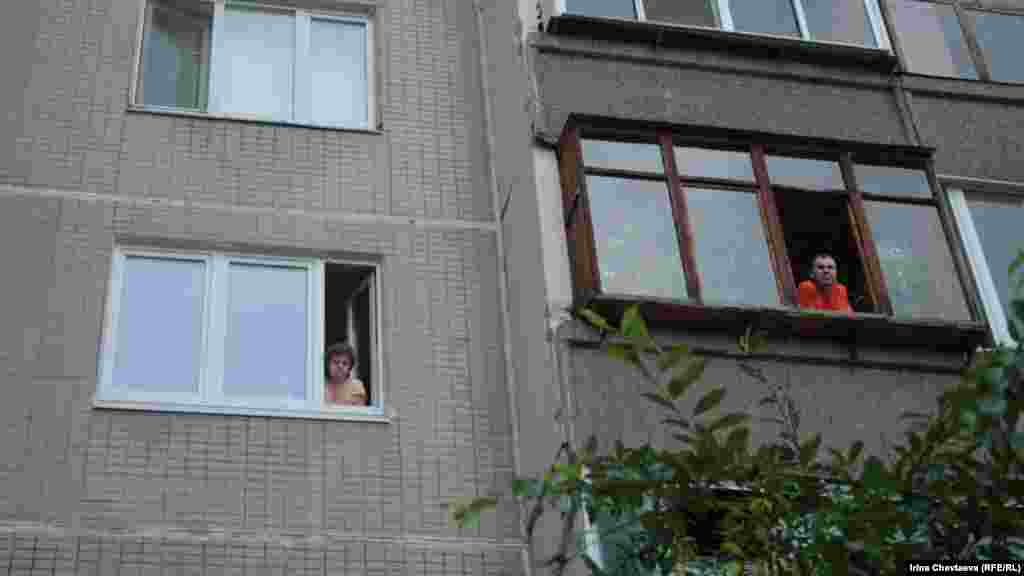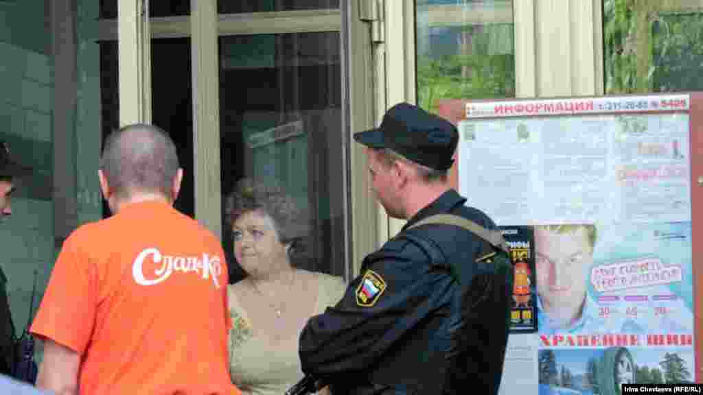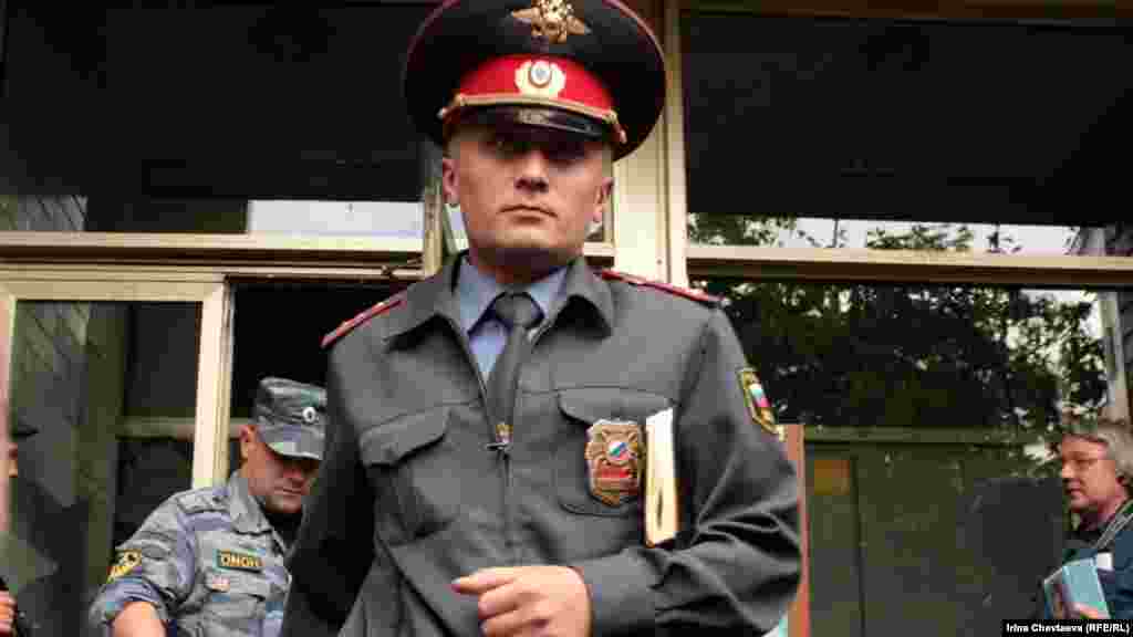 Водитель машины Следственного комитета в ожидании выноса изъятых вещей