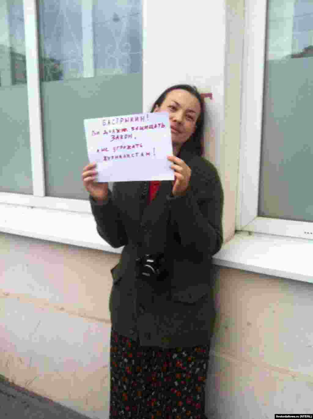 Журналист Радио Свобода Марьяна Торочешникова готовится к пикету
