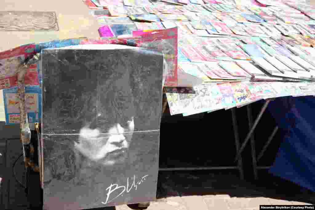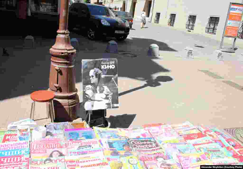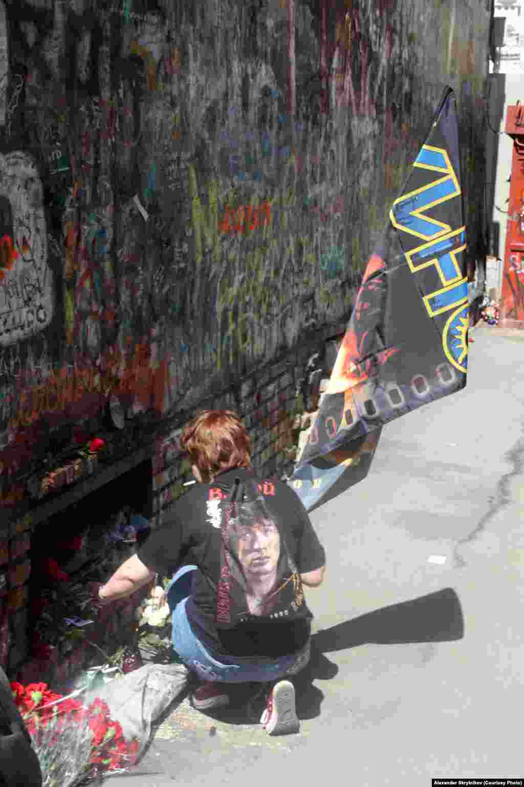 Russia -- Rock singer Victor Tsoy fans celebrate his 50th anniversary in Arbat "Tsoy wall" Moscow, 21Jun2012