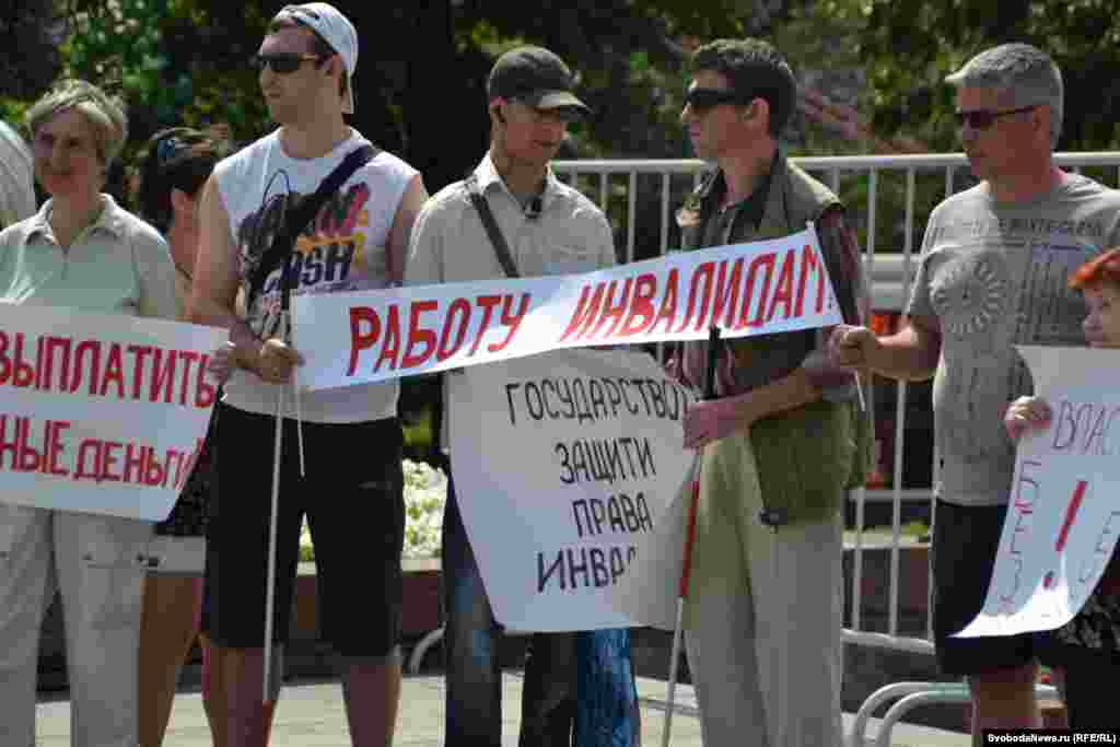 В Москве 5 июля прошел пикет сотрудников call-центра, инвалидов по зрению. Они требуют выплаты задолженности по зарплатам. Центр прекратил работу 2 года назад. До сих пор работодатель не выплатил сотрудникам-инвалидам , многие из которых так и не смогли найти новое место работы, деньги. Фото Маргариты Васильевой