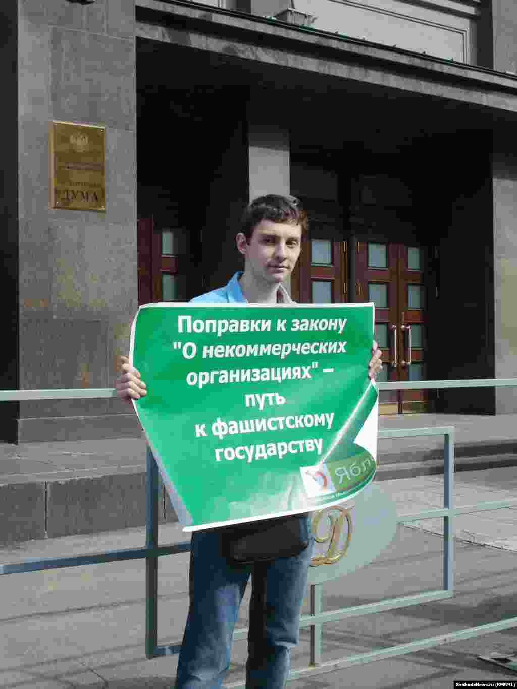 Одиночные пикеты активистов партии "Яблоко" у Госдумы