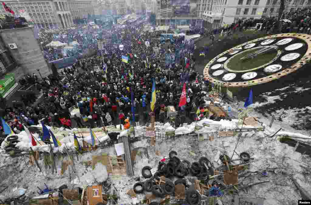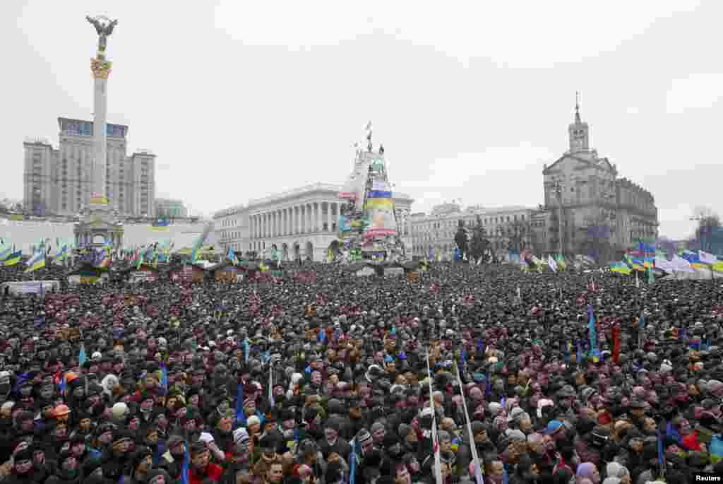 Бессрочная акция сторонников Евроинтеграции в Киеве в воскресенье вновь собрала более ста тысяч человек