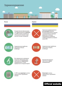 "Любой желающий может распечатать с сайта, расположенного по адресу http://zapobedu.com.ua, и распространить агитационные материалы – листовки, значки, стикеры, плакаты. Инфографика, размещенная на портале, дает наглядное представление о развитии здравоохранения, образования, пенсионной системы, мер социальной защиты в России и на Украине, их основные цифровые показатели даны в сравнении".
