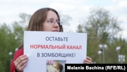 Участники акции требовали от власти не допустить закрытия ТВ2 и прекратить давление на независимые СМИ.