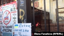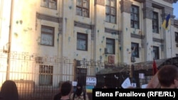 Пикет у российского посольства в Киеве в связи с проникновением российских танков на территорию Украины и сбитым в Луганске сепаратистами самолетом ИЛ-76 перерос в беспорядки. Пострадал фасад посольства и автомобили сотрудников.