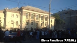 Собравшихся около 300, ядро их составляют молодые люди в масках, именно они разбивают машины российского дипкорпуса.