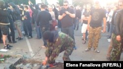 Я ушла, не дождавшись финала акции. Мне нужно было успеть на интервью с художником Матвеем Вайсбергом, утром он улетал в Лондон на выставку, посвященную Майдану. Рассказала ему об увиденном. Матвей, активист Майдана, с неудовольствием послушал мой рассказ и просмотрел фотографии. Он считает, что киевская радикальная молодежь сделала очередной подарок путинским пропагандистам.