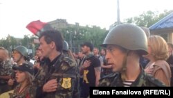 Протестующие выкрикивали: Путина в отставку, Думу распустить! Ну и традиционное "Путин х..ло". Из проукраинских лозунгов звучали не менее традиционные "Слава Украине – героям слава". В общем порыве гимн Украины исполнили представители самообороны и сочувствующие граждане. Их было больше, чем разрушителей машин, за действиями последних они наблюдали с явным одобрением и весельем.