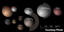 Иллюстрация показывает относительные размеры, цвет и альбедо крупных трансплутоновых объектов. GNU Free Documentation License. Председатель комиссии МАС по выработке определения понятия «планета» Оуэн Гингерич предложил разделить планеты на «классические» и так называемые «плутоны», к которым сейчас относятся 3 открытых небесных тела. Он сказал: «Мы говорим о восьми классических планетах: Меркурии, Венере, Земле, Марсе, Юпитере, Сатурне, Уране и Нептуне. И о новой категории планет, которая определенно будет расти». Александр Сергеев объясняет суть предложенного комиссией определения понятия «планета» таким образом: