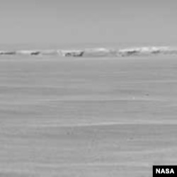 Кратер Виктория. Фото Opportunity. Путь марсианского разведчика к этой цели продолжается более двадцати земных месяцев. Сейчас аппарат находится менее чем в 50 метрах от кратера и должен достичь его границы за два-три переезда.