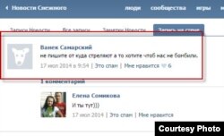 Есть также два сообщения юзера "Ванек Самарский", бойца сепаратистских формирований, жителя Снежного. Его настоящее имя – Иван Кривобедрый. Сообщения, вероятно, имеют отношение к катастрофе "Боинга", они написаны сразу после его падения. Однако контекст в данном случае неясен: