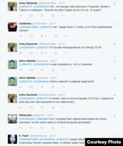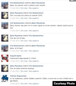 Жительница Снежного (сторонница сепаратистов) по имени Оля Кривошеенко слышала звук, похожий на звук выпущенной ракеты, перед тем, как был сбит МН17. Позднее в ветке обсуждения она говорит, что хорошо, если был сбит украинский самолет, поскольку он летел бомбить Снежное – как это уже было несколькими днями ранее.