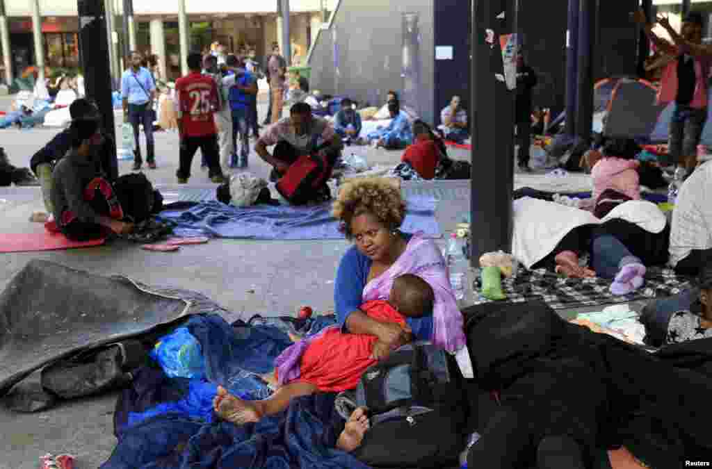 Мигранты на станции метро в Будапеште, недалеко от Келети, 2 сентября