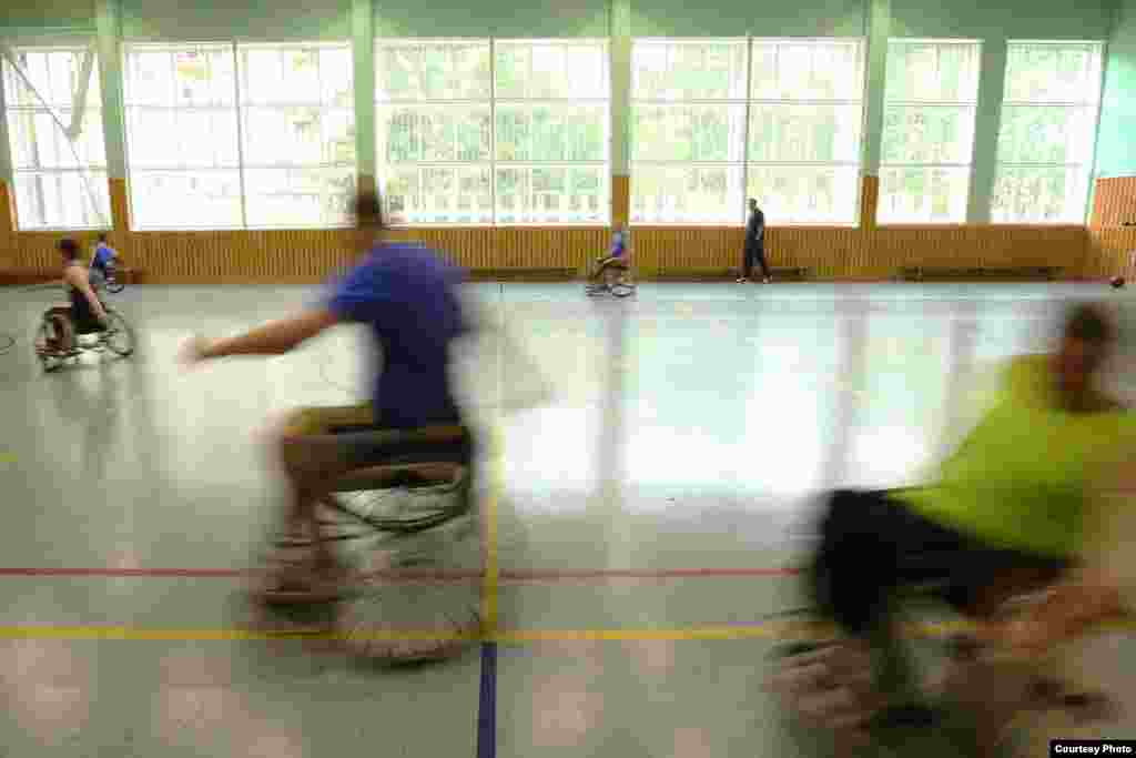 (баскетбол на колясках): «Да времени немного свободного - 5-6 часов поработаю, я камни вставляю дома в бижутерию, потом тренировка 3 часа, и еще в реабилитационном центре детей тренирую. Скучно не бывает».