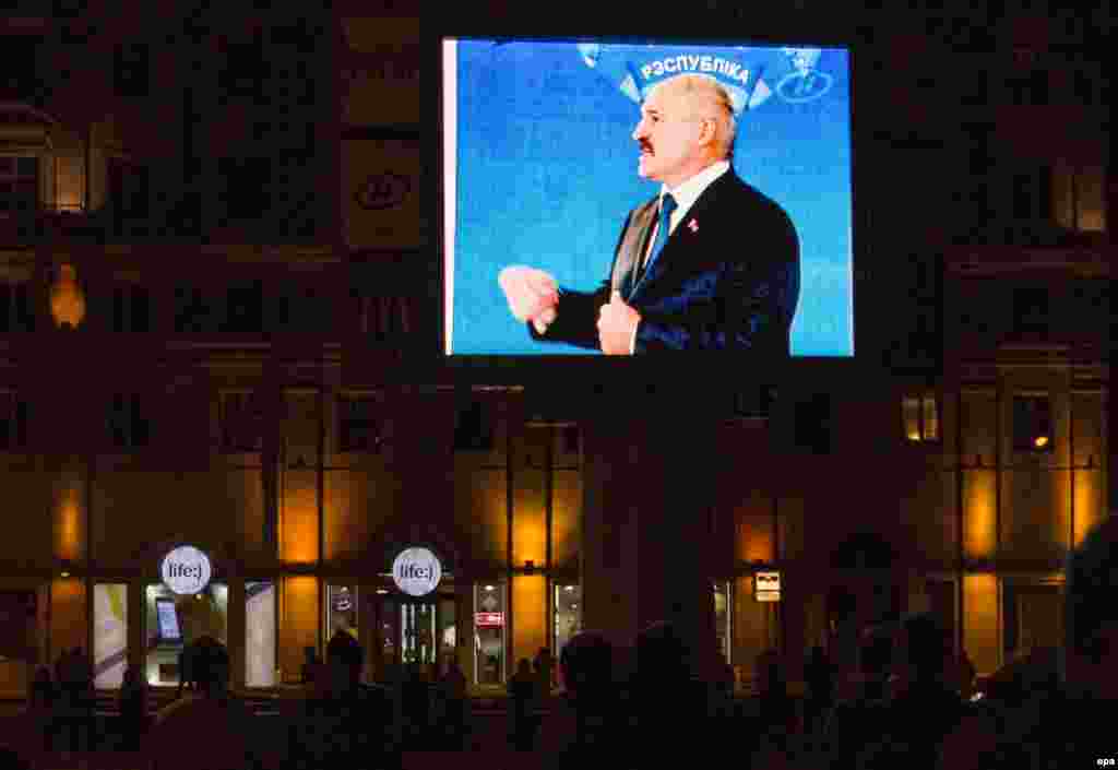 Акция белорусской оппозиции в Минске после закрытия избирательных участков