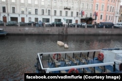 Активисты спустили на воду реки Мойка сосновый гроб и внешнюю деревянную обивку для "груза 200". На гробах были написаны вопросы "За что?" и "За кого?".