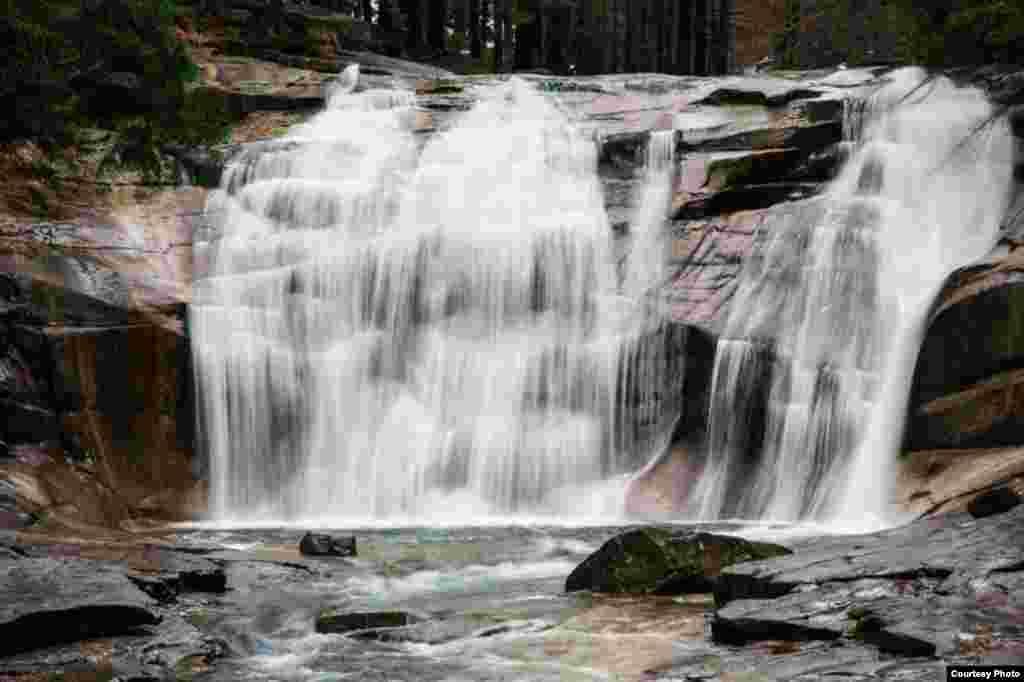 Мумлавский водопад в Чешской Республике относят к числу больших - перепад его вод составляет 9,5 метров. А маленькой водопад по-чешски (слышите, Виктория и Ниагара?) - это когда меньше 3,5 метров. Но не в грохоте падения водной стены и не в снопах брызг дело. Природа - это гармония, а в долине Мумлавы в Крконошских горах с этим все в полном порядке. Если будет холодная зима - Мумлавский водопад замерзнет (слышите, Виктория и Ниагара?) и превратится в ледопад.