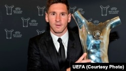 На награду также претендовал еще один игрок "Барселоны" Неймар и форвард "Реала" Криштиану Роналду, который получил приз по итогам прошло года.