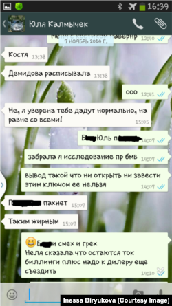"Это бмв до суда еще не дошло, а то я боюсь еще и оперов всех со смирновым вызывать будут, что бабки просили!" – пишет она 5 марта 2015 года.